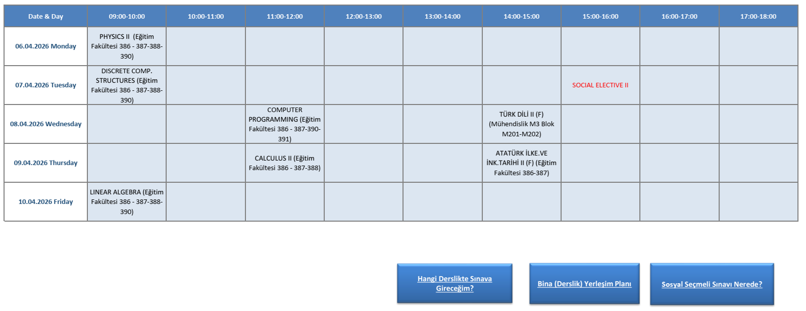 2025-2026 Bahar Dönemi Ara Sınav Takvimi